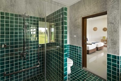 This comfortable villa with generous balcony is overlooking organic rice paddies. The villa offers air-conditioning and a bathroom with a large shower.